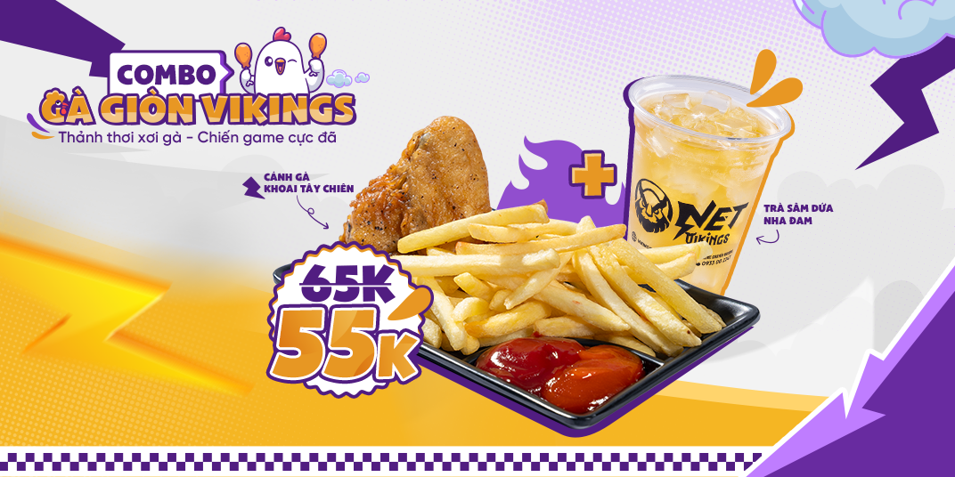 💪️ Anh em game thủ đã sẵn sàng vừa ăn ngon – vừa chiến game sung chưa? Net Vikings chính thức trình làng Combo Gà Giòn Vikings – lựa chọn “chống đói – tiếp năng lượng” chuẩn bài cho mọi trận combat kéo dài từ sáng tới khuya.